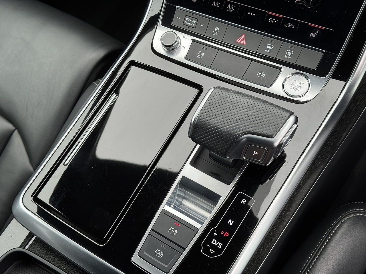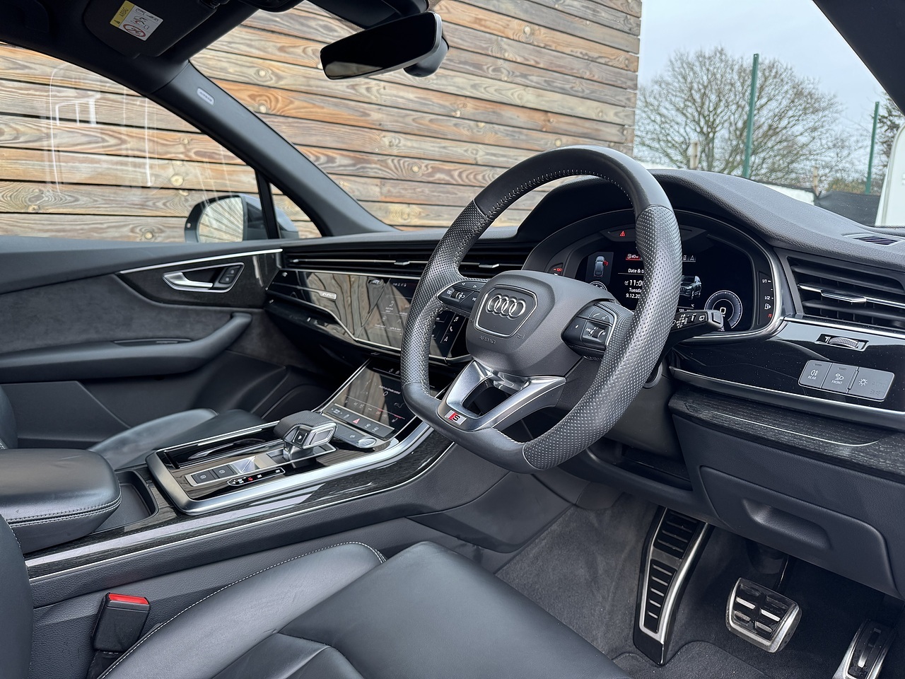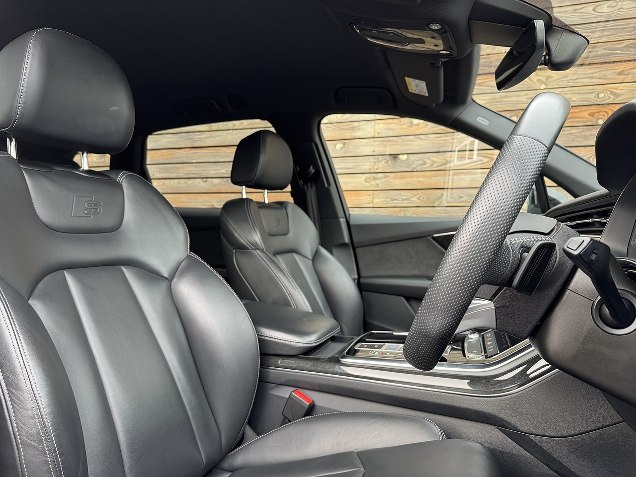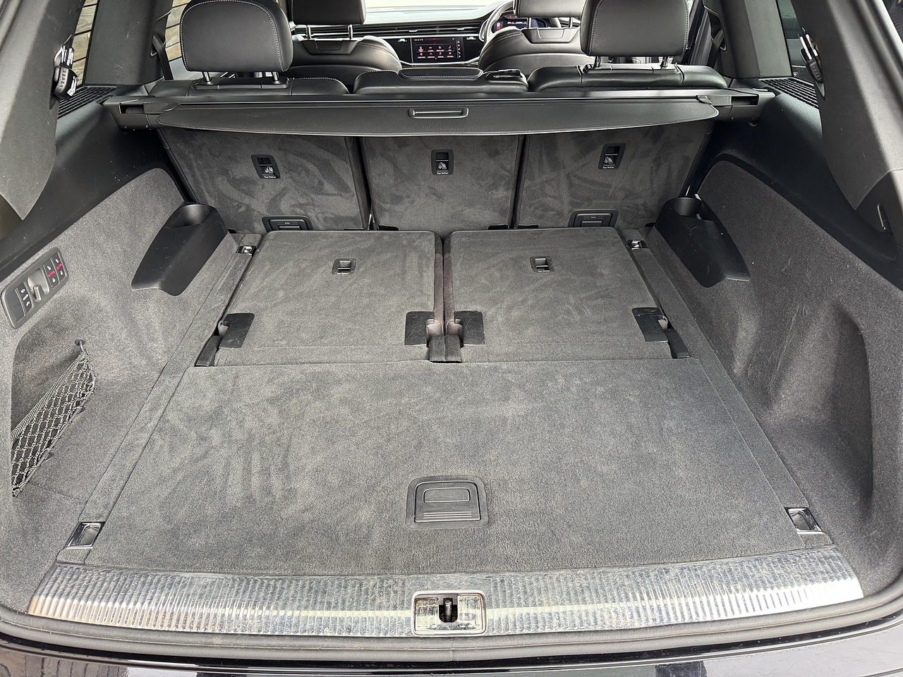 The list of features on this Q7 includes: Black edition | Driver Memory Seat | Mythos Black | 21" Gloss Black Multi Spoke Alloy Wheels | 7 Seater | Apple CarPlay | Power Operated Tail Gate | Heated Front Seats | Reversing Camera | Parking Sensors | Electric Front Seats | Multifunction Flat Bottom Leather Steering Wheel | Leather Seats | Air Suspension | Digital Cockpit | Black Styling | Black Railings | A/C | Cruise Control | LED Headlights | Grey Contrast Stitching | Wireless Charging Tray | S-Line Embossed Seats | Floor Mats | Body Coloured Mirrors | Alcantara Door Cards | Audi Drive Select | DAB.
