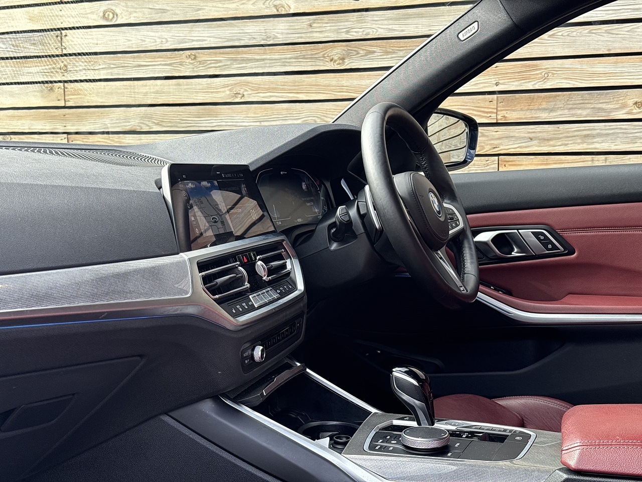 The list of features on this BMW 330e includes: Comfort Plus Pack | Front Lumbar Support | Heated Steering Wheel | Heated Front Seats | Technology Pack | M Sport Stitched Seat Belts | Leather Multifunction Steering Wheels | Digital Cockpit | Head Up Display | Cruise Control | 19" Gloss Black 5 Twin Spoke Alloy Wheels | LED Headlights | Bluetooth | DAB Radio | Keyless Start | Blue Brake Calipers | Privacy Glass | Touch Screen | Ambient Lighting | Driver Memory Seat | Sat Nav | Floor Mats | Tacora Red Vernasca Leather | Multiple Driving Modes (Sport, Hybrid, Electric & Adaptive) | Electric Folding Mirrors.