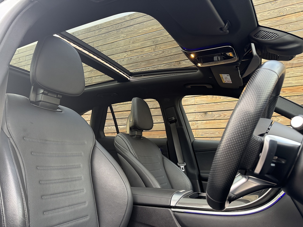 The list of features on this GLC300dh includes: Premium Plus Pack | 64 Colour Ambient Lighting | Opening Pan Roof With Sliding Blind | Burmester Sound System | Front Memory Seats | Heated Front Seats | Sat Nav | Side Steps | Wireless Phone Charging Tray | Front & Rear Parking Sensors | Reversing Camera | Digital Cockpit | Touch Screen | Leather Multifunction Steering Wheel | Cruise Control | Silver Railings | Power Operated Tailgate | DAB Radio | Bluetooth | Black Leather Upholstery | Grey Contrast Stitching | AMG Stitched Floor Mats (standard in rear) | USB-C Points | Star Grille | 20" Multispoke Diamond Cut Alloy Wheels | Head Up Display | Electric Folding Mirrors.