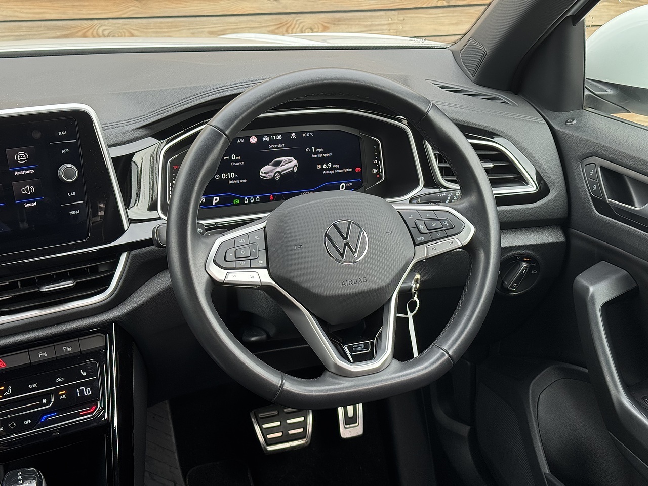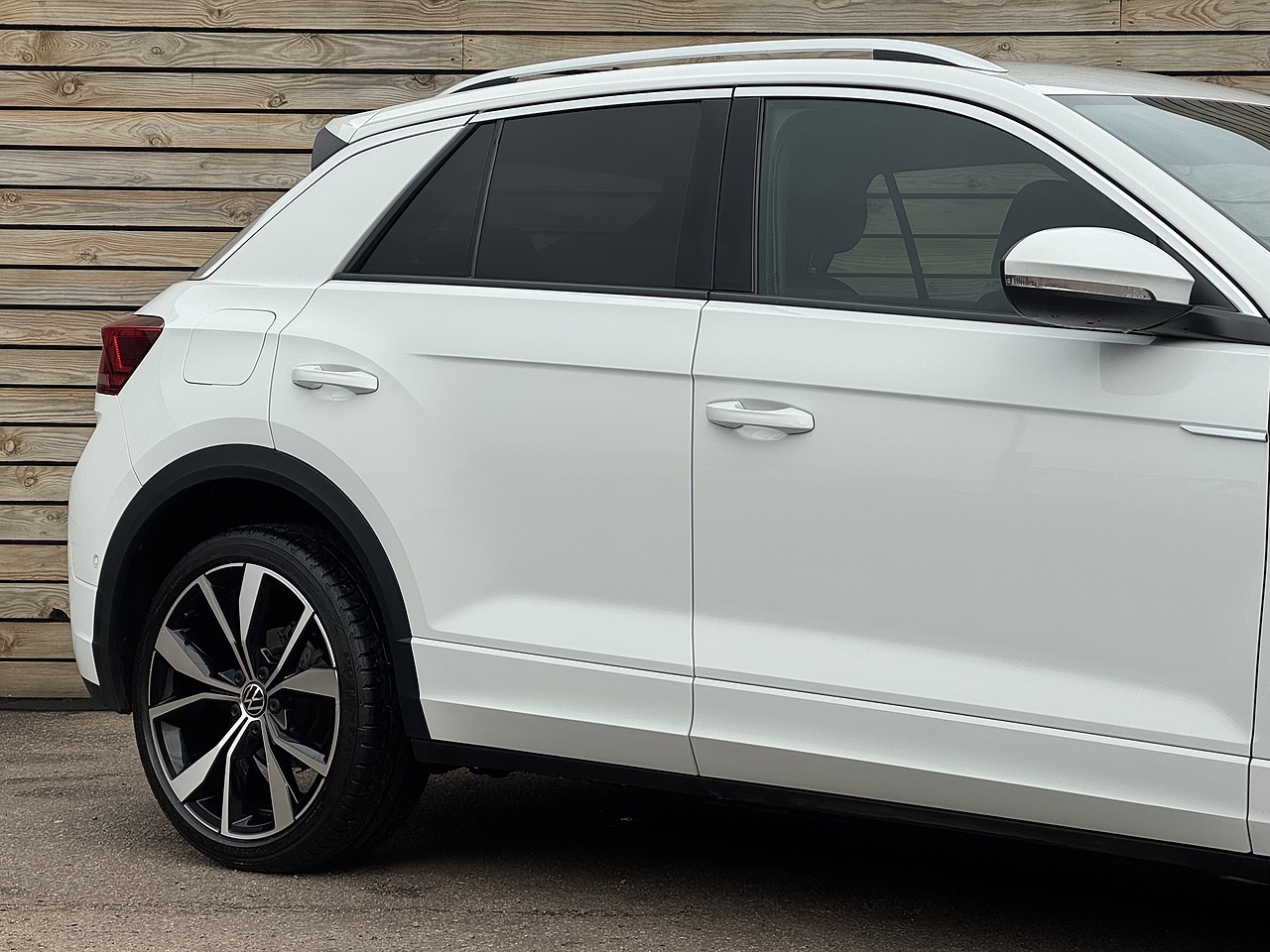 The list of features on this T-Roc includes: Heated Front Seats | Apple Car Play | R-Line Styling | Sat Nav | Digital Cockpit | Privacy Glass | Bluetooth | DAB Radio | Reversing Camera | Front & Rear Parking Sensors | Leather Flat Bottom Multifunction Steering Wheel | Heated Mirrors | Electric Handbrake | Dual Climate Control | LED Headlights | Silver Railings | 19" Diamond Cut Alloy Wheels | USB-C Points | Floor Mats.